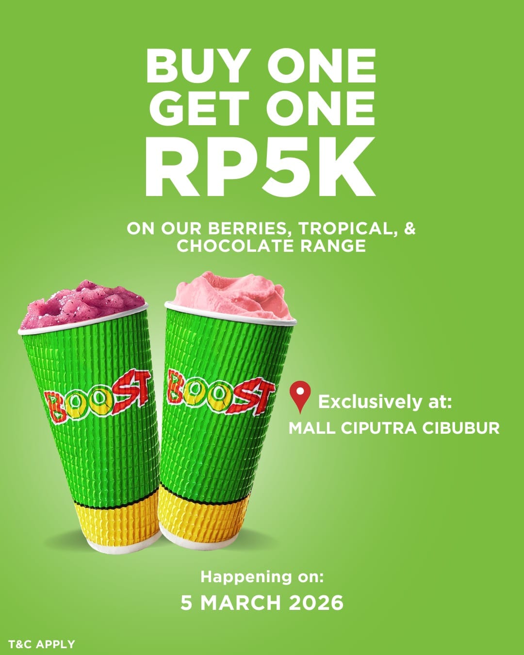 Untuk melihat promo & discounts Mall Ciputra Cibubur yang sedang berlangsung, Anda bisa mengunjungi halaman promo disini.